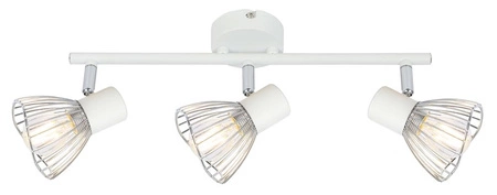 - Skromny i subtelny; wykończony w kolorze białym z chromowymi wstawkami, abażur ażurowy, zapewniający maksymalne wykorzystanie mocy źródła światła; możliwość regulacji kąta nachylenia klosza; do kompletu: kinkiet, listwa 2 oraz plafon 3; dostępny w trzech
