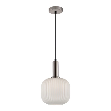 Lampa wisząca Italux Penzi to elegancki i minimalistyczny element oświetlenia, który wprowadza do wnętrza nowoczesny charakter. Pojedynczy klosz o średnicy około 20 cm wykonany ze szkła w białym wykończeniu współgra z srebrnym stelażem, tworząc subtelny, lekki design. Model obsługuje jedno źródło światła E27 (do 40 W), co pozwala na zastosowanie żarówek LED, dopasowując jasność do potrzeb użytkownika.