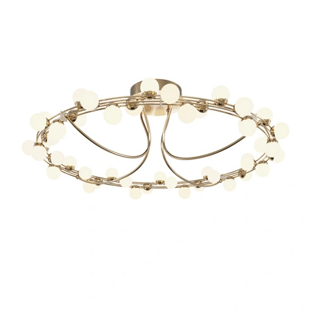 Lampa wykonana jest z wysokiej jakości metalu w kolorze złotym oraz dekoracyjnych szklanych kul, które nie tylko doskonale odbijają światło, ale też wprowadzają dynamiczny efekt świetlny. Solidna konstrukcja i staranne wykonanie gwarantują trwałość i estetykę przez lata. To połączenie elegancji i funkcjonalności, które sprawdzi się w wielu stylach wnętrz — od glamour po nowoczesną klasykę.