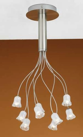 Posiada 9 ramion na których umieszczone są szklane klosiki